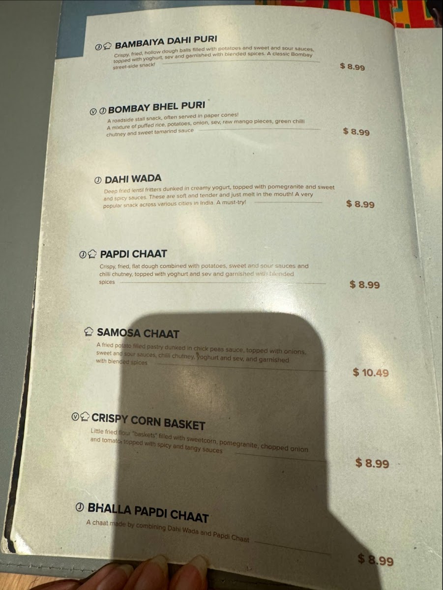 Don’t miss out on the Chaat Bar, where classics shine. The Bambaiya Dahi Puri, crispy hollow dough balls filled with tangy potatoes and topped with yogurt, is a delightful street-side snack that brings Mumbai's vibrant bazaar to your plate for just $9.59. And for a palate thrill, the Pani Puri offers a blend of textures and flavors that’s simply irresistible, also priced at $9.59.